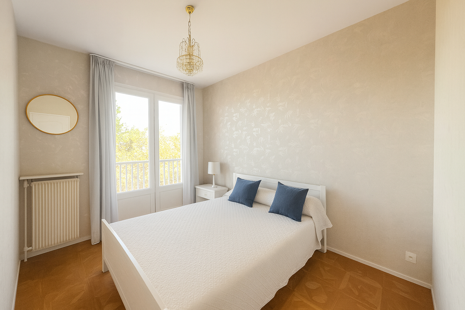 Les photos présentées ont été optimisées par traitement d'image afin de mieux refléter le potentiel du bien. Elles respectent les volumes, la disposition, la vue extérieure et les teintes réelles de l'appartement. Rénovation à prévoir.